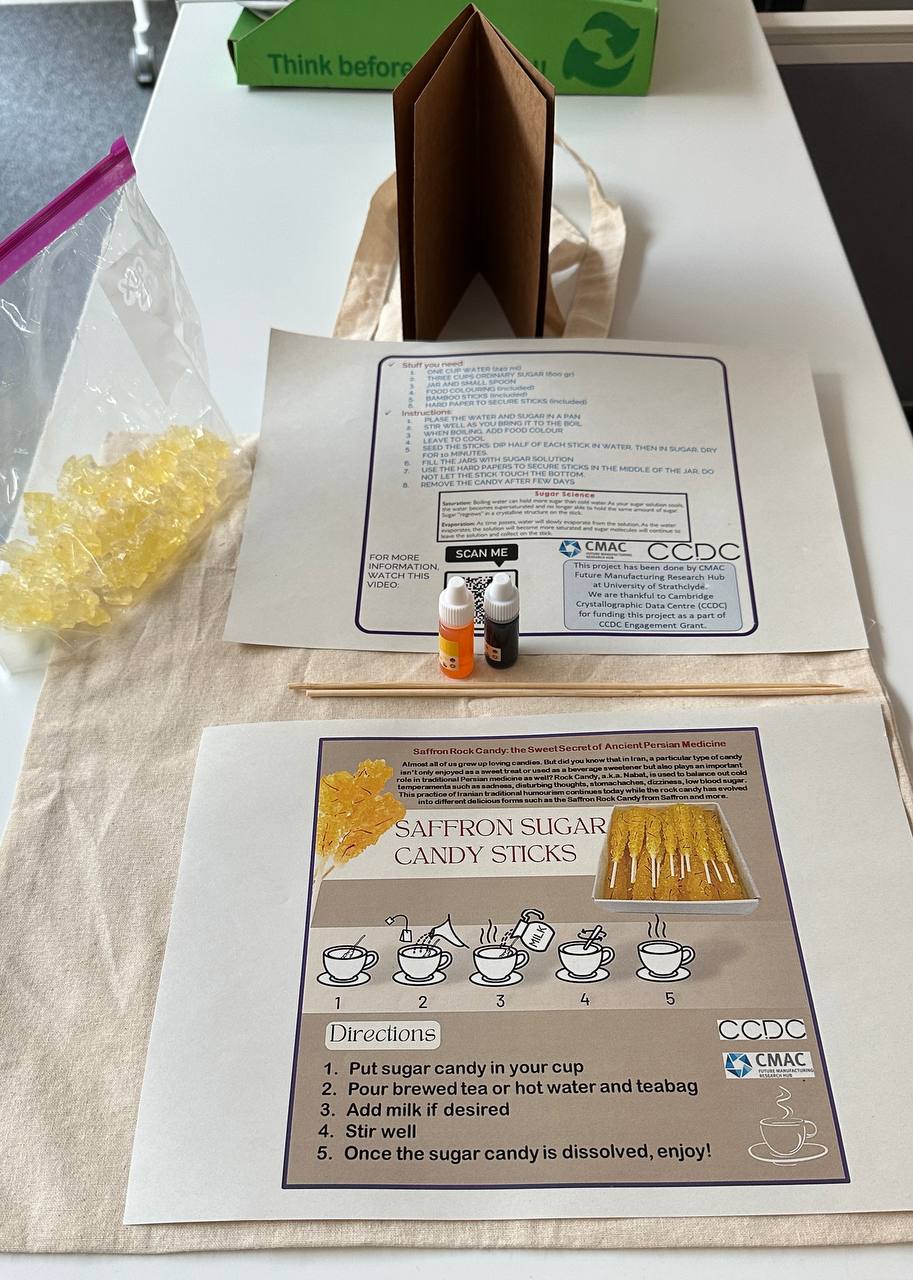 Project: Self-learning experimental kits to learn hands-on about crystallisation by creating rock candy. The kits are delivered to participating schools within the Greater Glasgow area and nationwide in the UK.