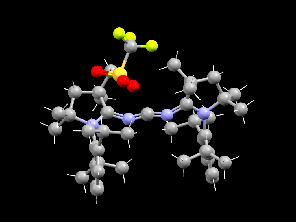 Below is a doubly oxidized carbene species with just four valence electrons, reported by The Bertrand group (Ying Kai Loh, Mohand Melaimi, Milan Gembicky, Dominik Munz, Guy Bertrand) from the University of California. The di-coordinate carbon centre shows substantial electrophilicity.